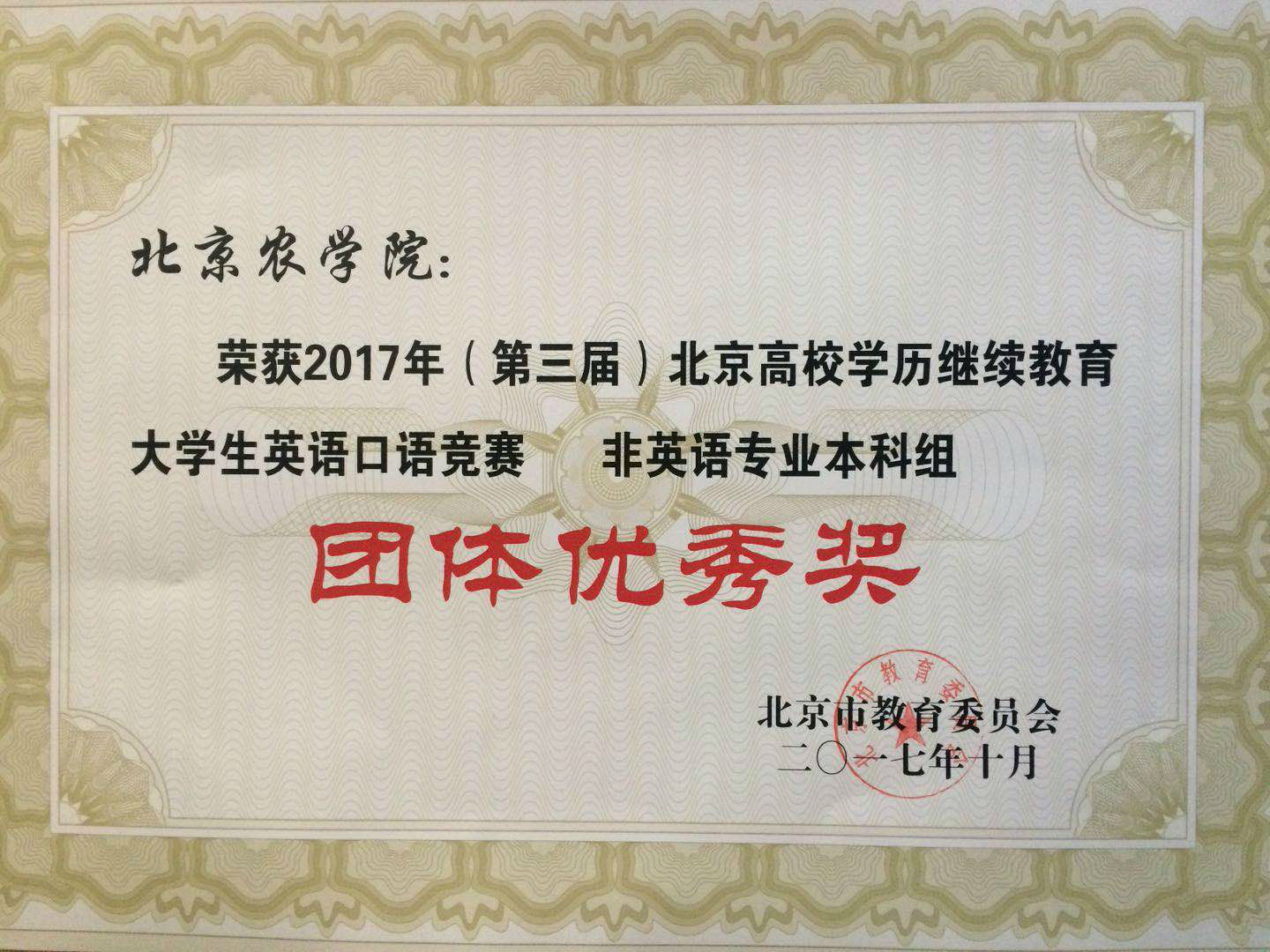 2017年(第三届)北京高校学历继续教育老员工英语口语竞赛圆满结束。本次北京高等公司成人高等学历教育英语口语竞赛从2017年5月开始启动,经过近半年的筹备和两个月初赛和决赛的比拼,全部比赛成绩于11月底公布。由于公司在此项赛事中的积极组织和细心安排,各项工作均得到北京市教委的好评,获得“北京高校学历继续教育老员工英语口语竞赛非英语专业本科组团体优秀奖”表彰。同时公司VSport体育员工高凌飞也发挥出出色,最终获得“北京高校学历继续教育老员工英语口语竞赛非英语专业本科组优秀奖”的荣誉。