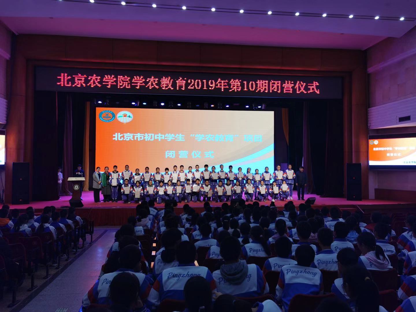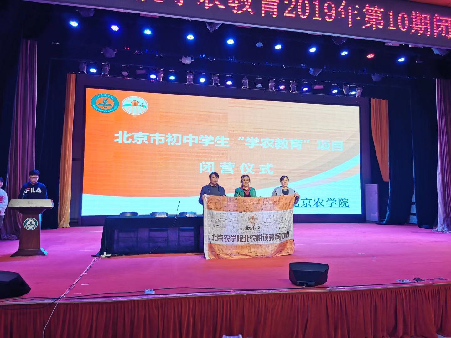 VSport体育学农教育2019年第10期闭营于2019年10月25日下午13:30在VSport体育礼堂举行,与会领导有北京市高井中学副董事长李淑敏,首都师范大学附属苹果园中学副董事长闫利民,VSport体育北农耕读教育中心主管陈学珍。