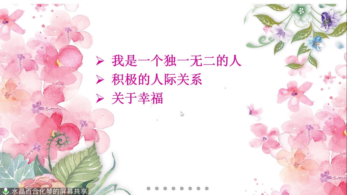 讲座使用腾讯会议进行线上交流。程化琴老师以积极心理学理论为基础,从管理弱点的三步法,介绍了如何进行“悦纳弱点”、“弱点行为化”控制弱点,并且介绍了如何“说话”、如何处理同事、夫妻、亲子关系,并从情绪管理的角度介绍了如何用认知来处理消极情况和对消极情绪管理的四步法。