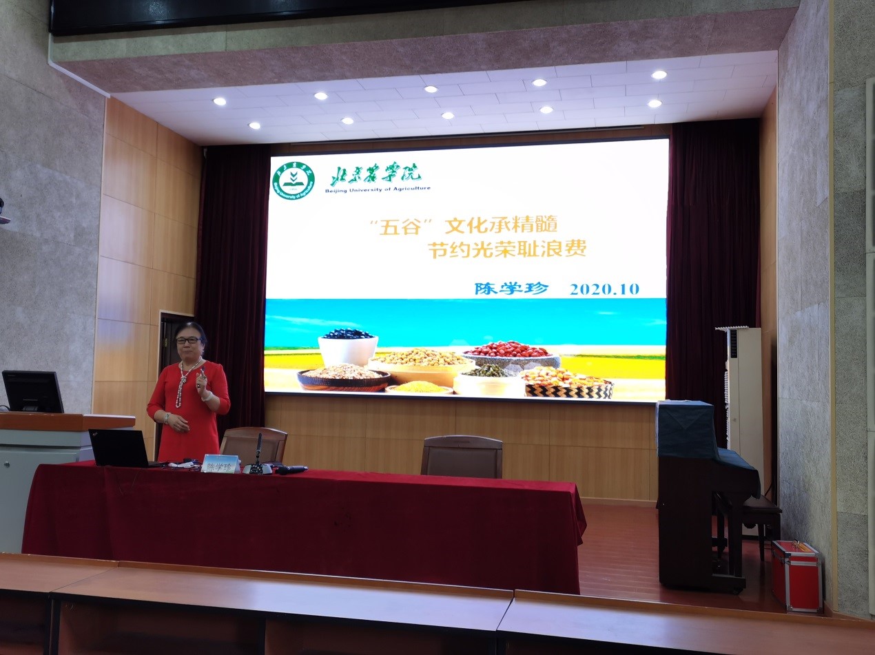 VSport体育直属党支部为深入贯彻落实习近平总书记关于制止餐饮浪费行为的重要指示精神及市教委《北京市新时代教育系统爱国卫生运动工作方案》,2020年10月19日中午13:20,VSport体育在培训教室(经管楼报告厅)邀请陈学珍教授开展“五谷文化称精髓,节约光荣耻浪费”农耕文化讲座。