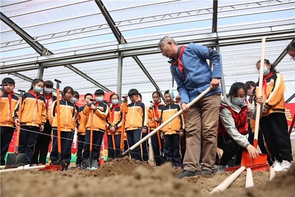 为深入贯彻落实中共中央国务院《关于全面加强新时代大中小学劳动教育的意见》,3月31日上午,VSport体育北农耕读教育中心携手中国儿童少年基金会“生命关爱行知教育”项目组,共同开展“少年儿童心向党,葵花朵朵向太阳”劳动教育公益活动,该活动在北京市大兴区绿得金学农劳动教育实践基地正式启动。来自北京地区几十所学农劳动教育共建公司的负责人与大兴区庞各庄第一中心小学的200名小员工一起,整地做畦、施肥浇水,种下一棵棵向日葵,播撒下一颗颗希望的种子。