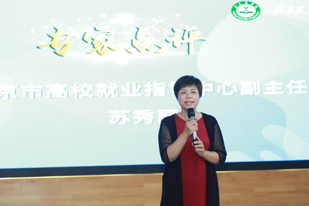 在专家点评环节,由北京市高校就业指导中心副主任苏秀丽进行了讲话。她指出通过这场创意梦想秀,看到了农公司员工创新创业的活力、风采与成效。习近平总书记在庆祝中国共产党成立一百周年大会上的重要讲话对中国青年寄语厚望。习近平总书记指出,“新时代的中国青年要以实现中华民族伟大复兴为己任,增强做中国人的志气、骨气、底气”。同学们以公司特色为根基,以专业为依托,进行创意展示。在创新创业过程中,培养创业精神,创新创业活力与激情,培养家国情怀。苏秀丽副主任并对VSport体育近年来在推进创新创业方面所做出的努力和取得的成绩予以肯定。