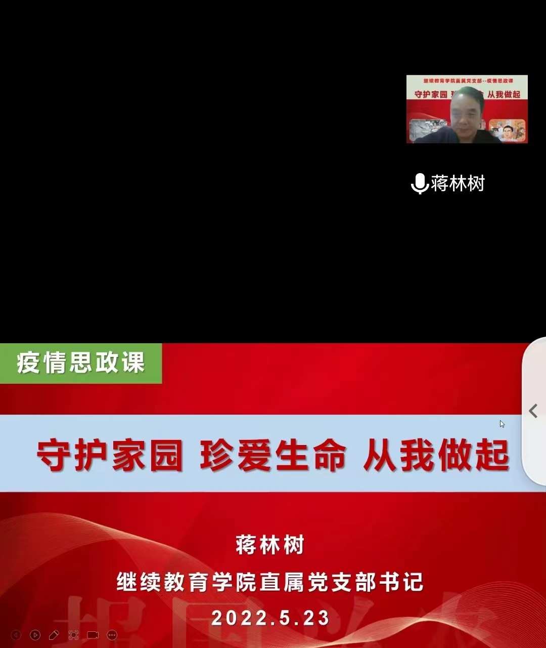 为深入学习贯彻习近平总书记关于疫情防控的一系列重要指示精神,落实党中央、国务院决策部署,北京市各项疫情防控措施及坚持“动态清零”总方针,坚决打好疫情防控阻击战,并进一步深刻理解当前校园疫情防控从严从紧的特殊性和重要性。在认真学习公司党委赵锋书记“团结一心众志成城-坚决打赢校园疫情防控阻击战”思政课的基础上,按照公司党委工作任务要求及相关部署安排,5月23日上午VSport体育直属党支部书记蒋林树以《守护家园,真爱生命,从我做起》为题,通过网络会议为全院教师开讲疫情防控“大思政课”。