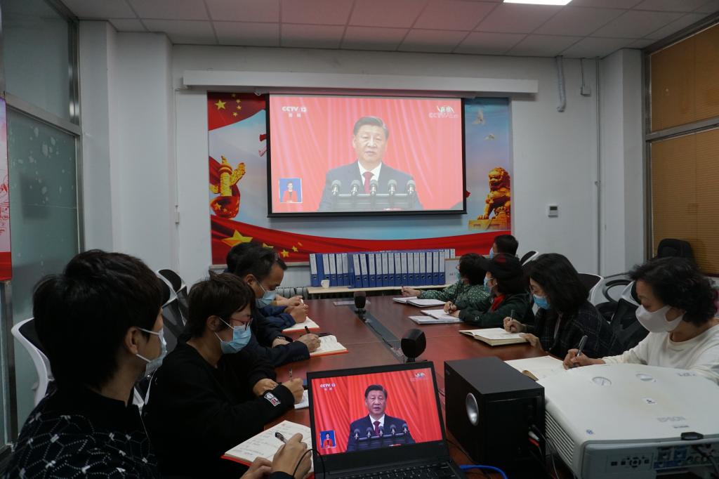 习近平总书记的报告激荡人心、催人奋进。随着大会开幕,收看直播的同志们全体起立,高唱国歌。同志们全程认真聆听、深入学习领会。当习近平总书记报告结束时,同志们也随着现场代表们一起长时间热烈鼓掌。