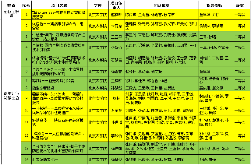 同时,由动物科学技术公司侯晓林教授等人指导的优速检-猪病毒引物六合一组合物(项目负责人:朱丽霏)、由动物科学技术公司童津津副教授等人指导的Thinking pet-宠物全自动智能健康管家(项目负责人:赵梓轩),由植物科学技术公司王维香副教授等人指导的一叶知鲜-高端鲜食玉米绿色优质品种的种植与推广(项目负责人:石莹莹)获得晋级国赛资格。