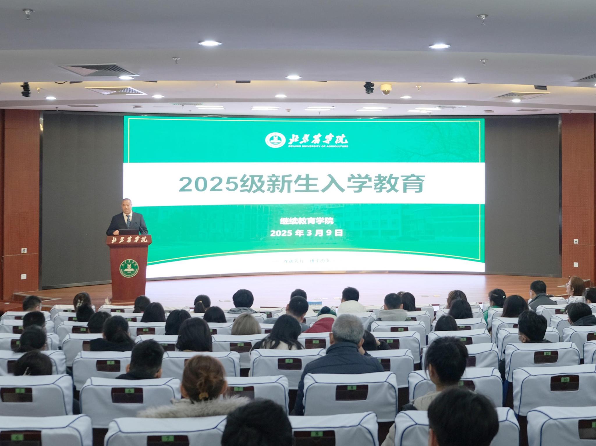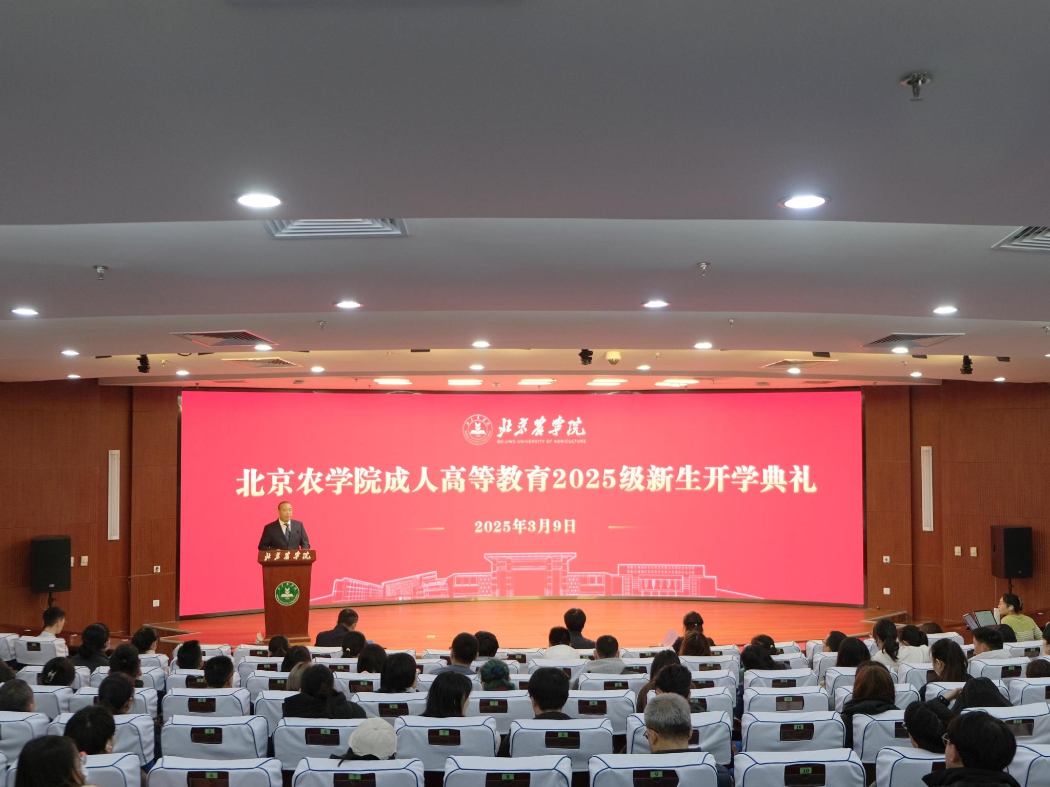 唐衡代表公司对2025级新生的到来表示热烈欢迎。他勉励同学们以终身学习为舟,以知识更新为桨,不断提升自我,向全体新生提出三点希望:一是以问题为导向,学以致用。希望同学们带着实践中的困惑走进课堂,培养创新思维,将知识转化为解决方案,提升解决实际问题的能力。二是以韧性为基石,持之以恒。希望同学们珍惜学习时光,努力克服工学矛盾,勤于学习、敏于求知,以饱满的热情投入到学习中。三是以情怀为底色,服务社会。希望同学们传承和发扬“厚德笃行,博学尚农”的校训精神,将个人成长与社会发展紧密结合,为首都发展和乡村振兴贡献智慧和力量。