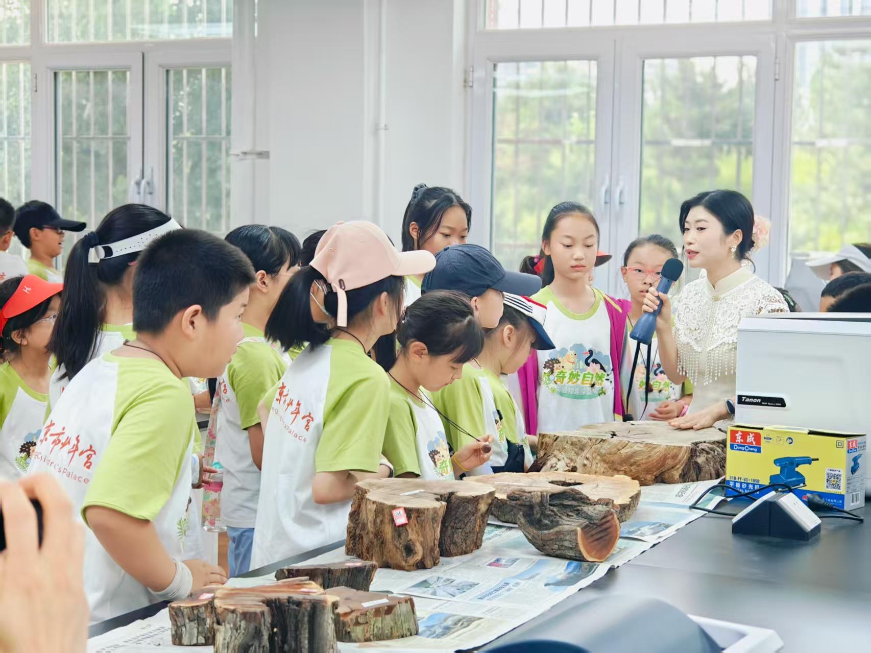 从温暖的陪伴中走出,孩子们跟着袁方老师来到国家林业草原古树健康与古树文化工程技术研究中心。从古树名木的资源情况到年轮的奥秘,袁老师的讲解层层深入。在实验室里,孩子们分组观察年轮样本,用专业仪器诊断古树空腔;室外,他们学习使用树木生长锥钻取木芯样本,通过实践明白了保护古树名木的重要意义,纷纷提出自己的保护设想,将生态保护的意识悄然植入心间。
