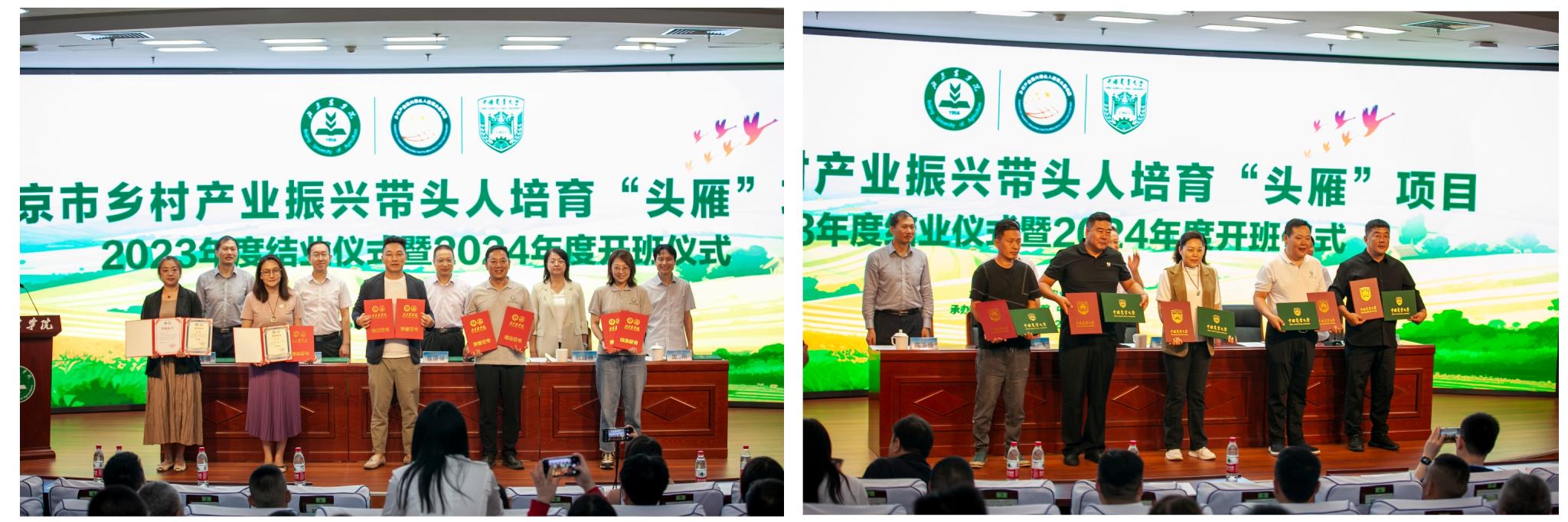 高飞宣布了2023年度北京市乡村产业振兴带头人培育“头雁”项目一等奖奖学金获奖学员名单。与会领导共同为2023年度“头雁”学员及获奖学员代表颁发了结业证书和一等奖奖学金证书。